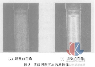 現(xiàn)有夾渣鈦管的X射線探傷底片一張,掃描輸入到計(jì)算機(jī)中(圖4),存在嚴(yán)重的劃痕且曝光不足。采用Photoshop軟件中的色階調(diào)整(直方圖調(diào)整)和曲線調(diào)整(灰度線性變換)命令,以及修復(fù)畫筆工具對(duì)其進(jìn)行處理。 在灰度圖像顏色模式中,曲線調(diào)整也可稱為灰度線性變換。一般在圖像曝光不足或曝光過度的情況下,圖像灰度值可能會(huì)局限在一個(gè)很小的范圍內(nèi),這時(shí) 在顯示器上看到的是一個(gè)模糊不清、似乎沒有灰度層次的圖像,所以用到的處理方法是灰度的線性變換,具體來說是分段線性變換,以對(duì)圖像中的每個(gè)像素的灰度值 作線性擴(kuò)展,從而擴(kuò)大整個(gè)圖像的像素灰度值范圍,有效改善圖像的視覺效果。分段線性變換可使圖像中的所有像素的灰度值在一定取值范圍內(nèi)作線性擴(kuò)展,而其它 取值范圍內(nèi)的灰度值所對(duì)應(yīng)的像素會(huì)被抑制,從而有效突出重點(diǎn)部分。該夾渣灰度線性變化前后的效果如圖5所示。圖像某些區(qū)域的灰度值范圍被明顯擴(kuò)大,以前灰 度值相近的像素對(duì)比度被拉大,缺陷輪廓更加清晰,圖像更有層次感,為進(jìn)一步分析作好了準(zhǔn)備。 雖然圖像效果得到了增強(qiáng),已經(jīng)可以判斷出缺陷的類型及缺陷所在的區(qū)域,但為更方便地判斷缺陷的大小,需對(duì)缺陷所在區(qū)域作進(jìn)一步處理。為了不影響 膠片其它區(qū)域,使缺陷更加突出,僅對(duì)缺陷所在的部分區(qū)域進(jìn)行處理。用矩形選框選中缺陷所在區(qū)域,再選擇合適的處理方法使缺陷的像素灰度值更低,背景的像素 灰度值更高,變換后的效果如圖6所示。