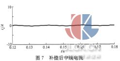 從圖中可以看出補(bǔ)償前三相電流嚴(yán)重不平衡,波形畸變嚴(yán)重,其中A相、C相電流的THDi約19%,B相電流的THDi約48%,中線(xiàn)電流iO很大。經(jīng)SVG補(bǔ)償后三相電源電流有很大改善,電流波形接近對(duì)稱(chēng)正弦波,畸變很小,且中線(xiàn)電流近似為零,如圖6、圖7。單周控制的三相四線(xiàn)制SVG能有效地補(bǔ)償非線(xiàn)性負(fù)載所帶來(lái)的系統(tǒng)諧波、無(wú)功和零線(xiàn)電流,具有較好的補(bǔ)償效果,且無(wú)需諧波和無(wú)功電流檢測(cè)模塊,電路結(jié)構(gòu)簡(jiǎn)單可靠。