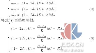 設(shè)系統(tǒng)電壓對(duì)稱(chēng),器件的開(kāi)關(guān)頻率遠(yuǎn)大于系統(tǒng)頻率,在一個(gè)開(kāi)關(guān)周期內(nèi),A,B,C點(diǎn)對(duì)逆變橋“O”點(diǎn)的電壓可以寫(xiě)為: